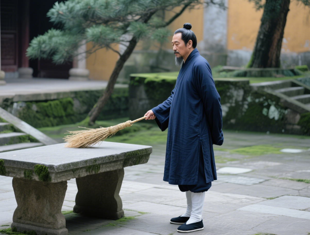Master Qing Songzi has dedicated his life to Taoism, cultivating wisdom through daily practice, temple offerings, and the study of Taoist classics. He is renowned for his calm demeanor and rigorous practice, embodying the harmony of the Taoist tradition.